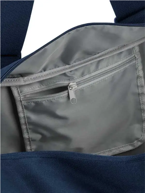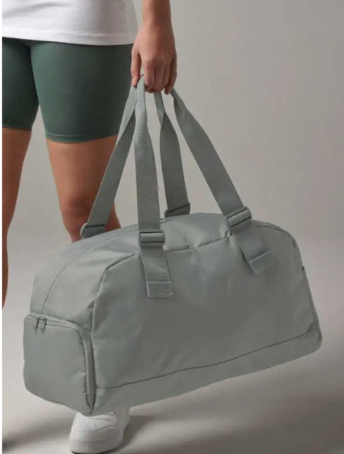 100% poliestere 600D riciclato rPET, equivalente a circa 14 bottiglie post-consumo, senza PVC. Borsone con tasca interna con cerniera, compartimento per scarpe/tasca impermeabile, tasca esterna aperta, manici a tracolla regolabile. Etichetta removibile TearAway. Poliestere riciclato certificato GRS - Control Union CU811033.
