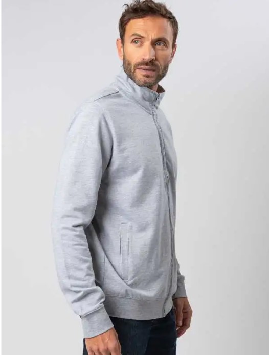 80% cotone, 20% poliestere. Felpa french terry con zip intera, maniche set-in, collo alto, tasche a filetto. Orlo inferiore e polsini in costina, struttura con cuciture laterali. Etichetta strappabile. Parte esterna: 100% cotone, parte interna: 50% cotone, 50% poliestere.
