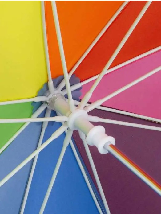 100% poliestere. Ombrello pioggia con apertura semplice e sicura grazie al dispositivo di sicurezza senza molla, sistema antivento per la massima flessibilità del telaio. Telaio con nervature in fibra di vetro, asta in acciaio cromato, punte punte arrotondate e allargate. Diametro: 73 cm, lunghezza da chiuso: 59,50 cm, 8 pannelli.