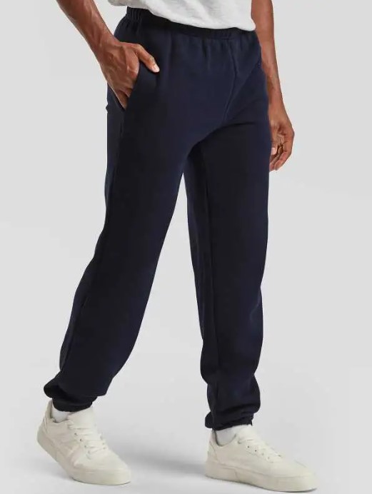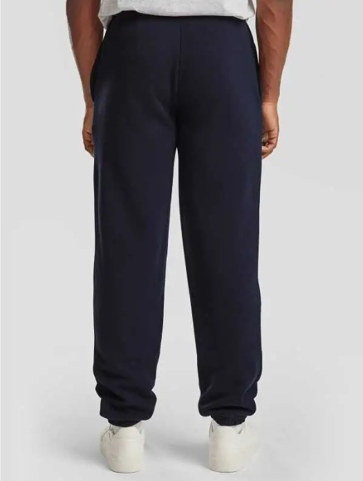 70% cotone, 30% poliestere. Pantaloni con elastico alla caviglia, vita elasticizzata, 2 tasche laterali. (Col. 94: 260 gm²).