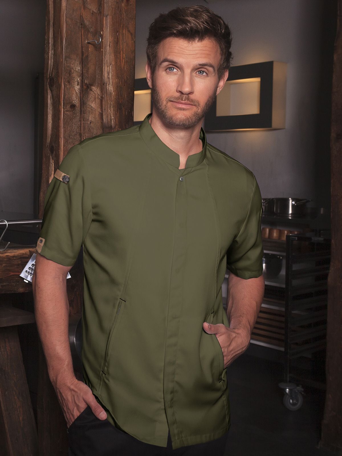 Lato anteriore 150 g/m². Lato posteriore 150 g/m². Giacca da cuoco sostenibile. traspirante. con regolazione dell'umidità . maniche corte. Taglio moderno (leggermente aderente). inserto posteriore in Jersey Piquà© per una maggior ventilazione e libertà d
