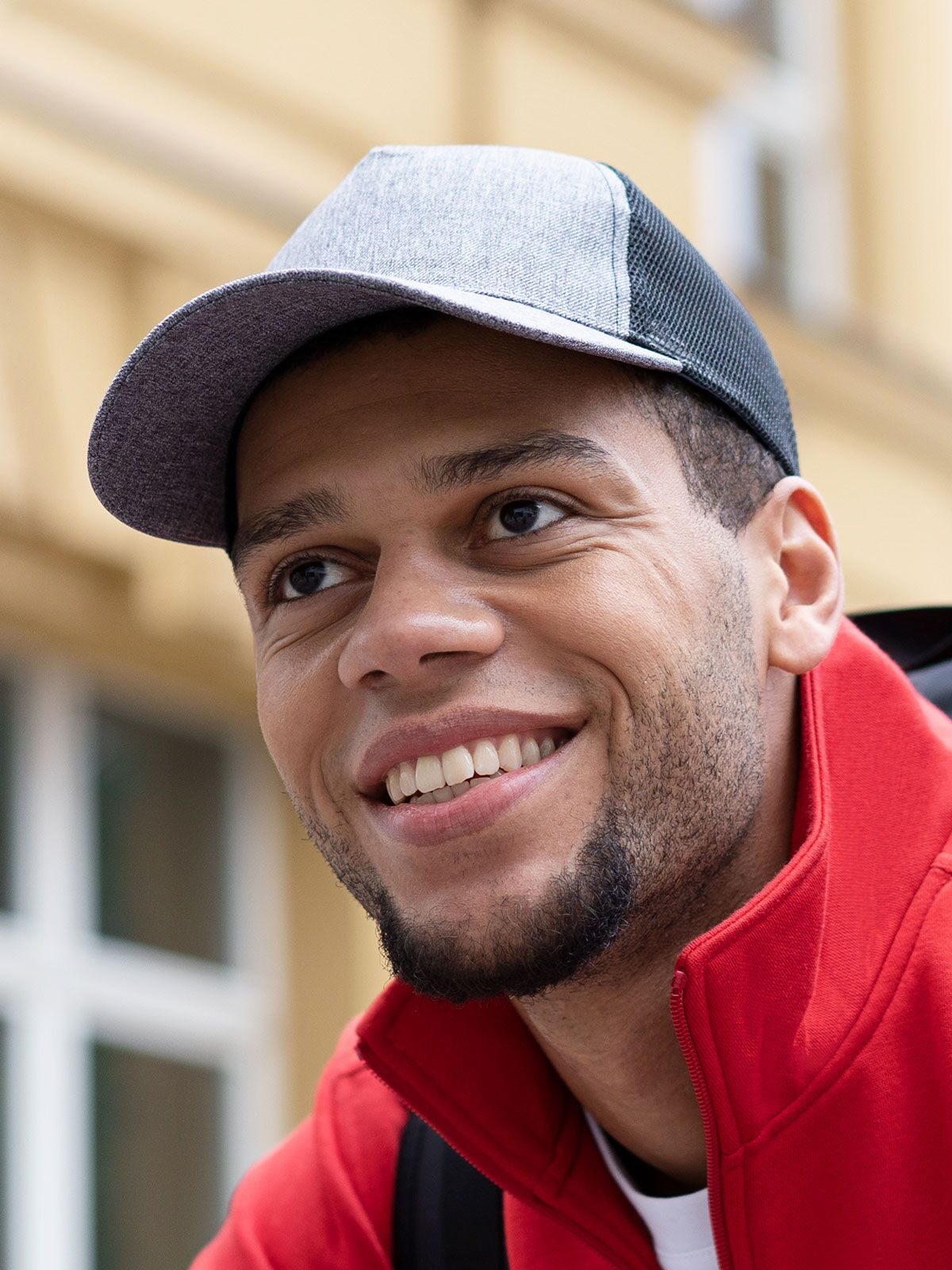 Lato inferiore visiera: 100% poliestere riciclato. 210 g/m². Mesh: 100% poliestere riciclato. 110 g/m². Cappellino trucker sostenibile con mesh. 5 pannelli. visiera curva. regolabile chiusura Click & Snap. fascia antisudore integrata. pannelli in rete sul