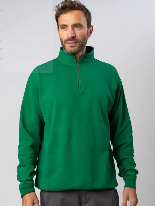 Felpa con maniche set-in. zip ¼ in plastica con tiralampo in metallo. felpata internamente. struttura con cuciture laterali.