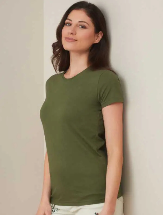 100% cotone ring-spun single jersey. T-shirt manica corta girocollo, nastro di rinforzo alle spalle, cucitura a doppio ago su maniche e vita, struttura con cuciture laterali. Col. GYH: 85% cot. 15% visc.