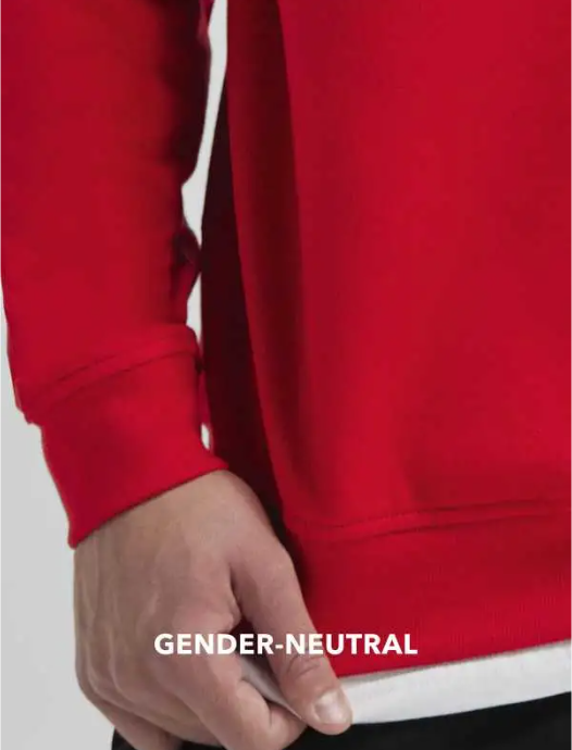 80% cotone, 20% poliestere riciclato . Felpa girocollo gender-neutral con cuciture laterali, maniche scese per una vestibilità rilassata, polsini classici e orlo inferiore in costina 1x1 con elastan. Interno felpato ed esterno 100% cotone per una migliore resa di stampa, senza etichetta.